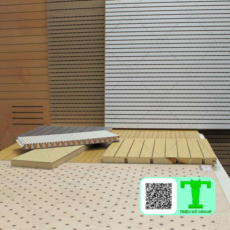 | 16 | Ván gỗ tiêu âm xẻ rãnh hoặc đục lỗ lõi MDF xanh chịu ẩm , hai mặt phủ Veneer Sồi hoặc Xoan. Dày 17mm | 800.000 |